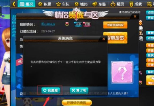 然后选择【我愿意】,就可以解除情侣关系了。