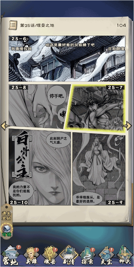 点击“剧情”,即可体验“可以玩的漫画”,回顾漫画经典场景,推进主线剧情与关卡,还可以获得主线剧情通关奖励哦~