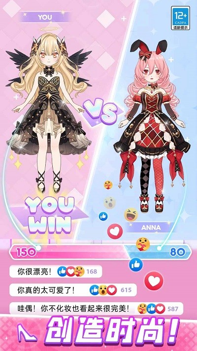 公主挑战赛:与其他公主同台竞技的PVP换装对决,通过搭配服饰、妆容、配件获取高分,赢得皇冠称号;