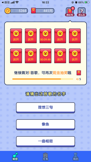 打发无聊的时间,猜猜歌曲就能免费领取红包,奖励多,刺激玩家积极参与;